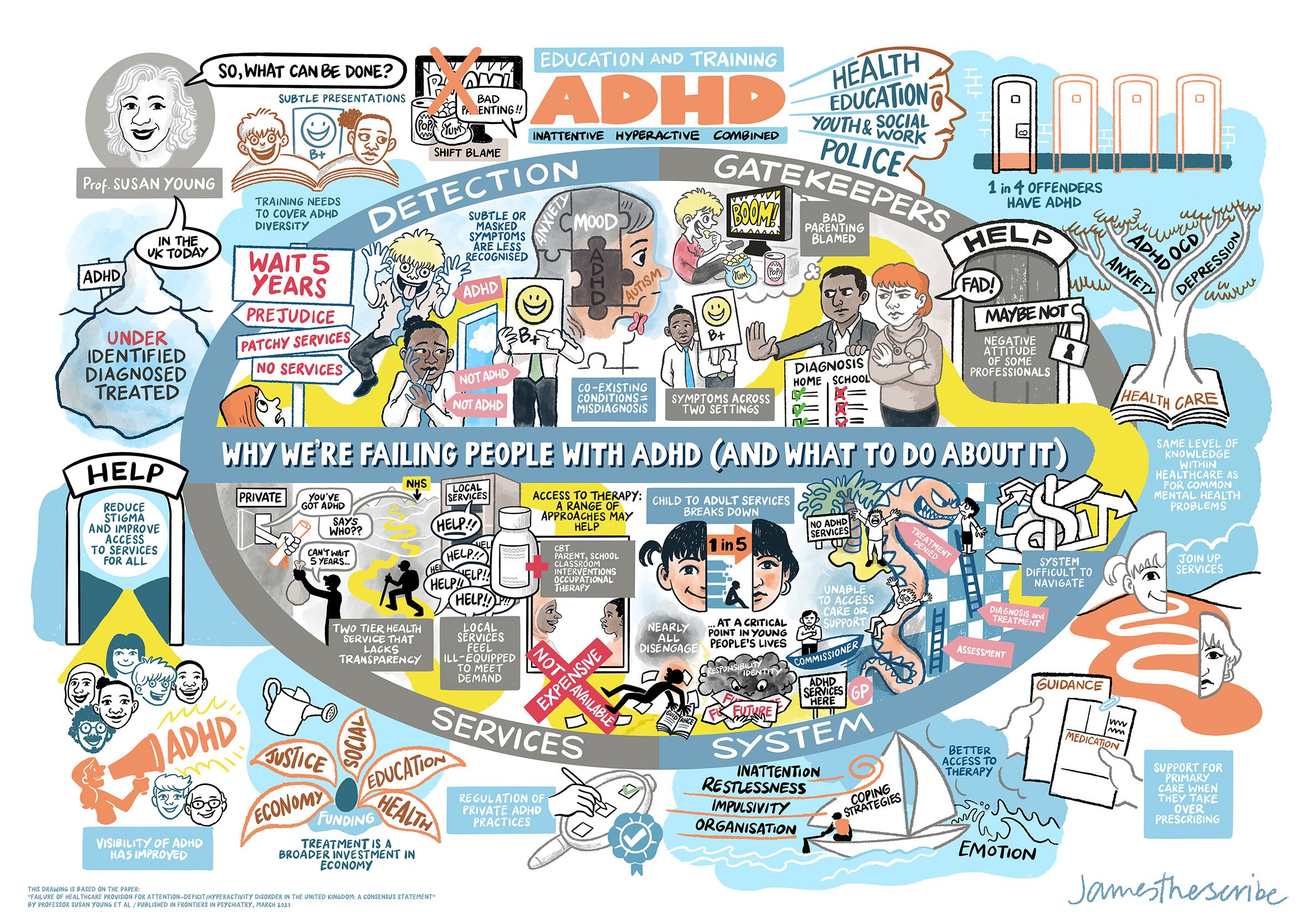 A piece of live scribing drawn at event on paper and subsequently coloured digitally.